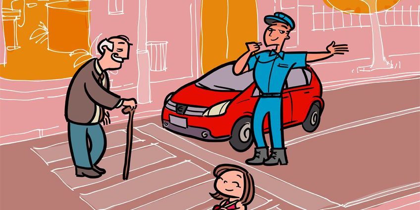 1. Para pedestres: Atravesse sempre na faixa! Para os motoristas: Dê preferência para que os pedestres atravessem a rua.